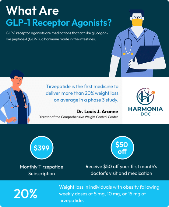 GLP-1 receptor agonists are medications that act like glucagon-like peptide-1 (GLP-1), a hormone made in the intestines. This hormone plays a part in managing blood sugar and digestion.